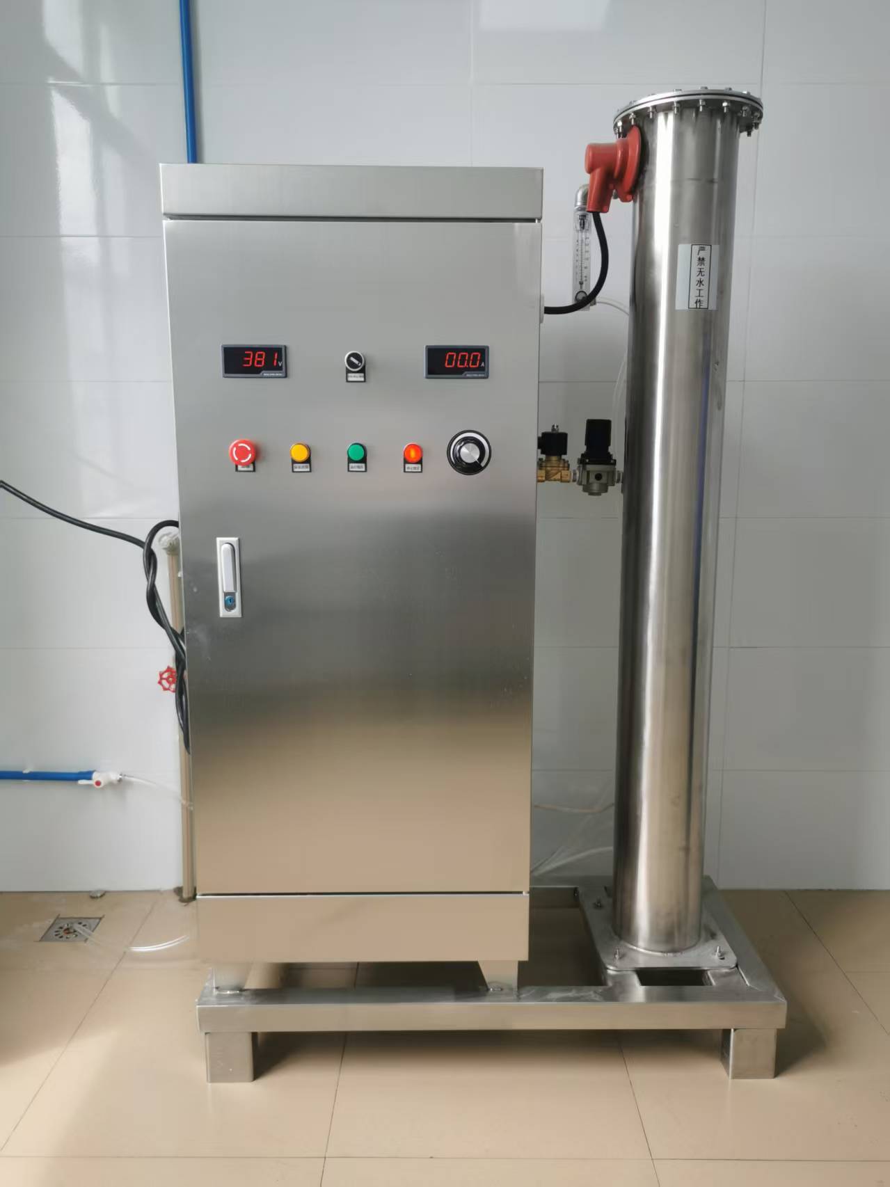 廣州竹料某牛肉干食品加工廠生產車間殺菌消毒復購200克臭氧機1臺400克1臺,2022年該公司采購了2套400克臭氧機也是用于食品廠殺菌消毒,時隔3年再次選擇佳環(huán)200克臭氧機用于新廠房車間消毒,臭氧設備目前已安裝調試完成,等待客戶驗收使用。臭氧配比方案給客戶選擇管道投加,在客戶原有的彩鋼板上安裝不銹鋼臭氧噴頭,每間隔4米1個,再采用PVC管把臭氧經過噴頭輸送到消毒車間里面,保證臭氧分布均勻。 臭氧發(fā)生器用于食品廠消毒的原理:利用臭氧的強氧化性殺死細菌、病毒等有害微生物。 臭氧在食品廠消毒應用主要用以下幾個方面: 空間消毒:對食品加工車間的空氣進行消毒 物體表面消毒:對食品容器、生產機械、包材等物體表面消毒 原料消毒:對食品生產原材料消毒,去除原材料表面附著的細菌病毒等微生物 解凍和清洗:還可利用臭氧水對冷凍生產的原材料解凍、清洗消毒 臭氧發(fā)生器廠家請咨詢廣州佳環(huán)18520310040李露(微信同號)